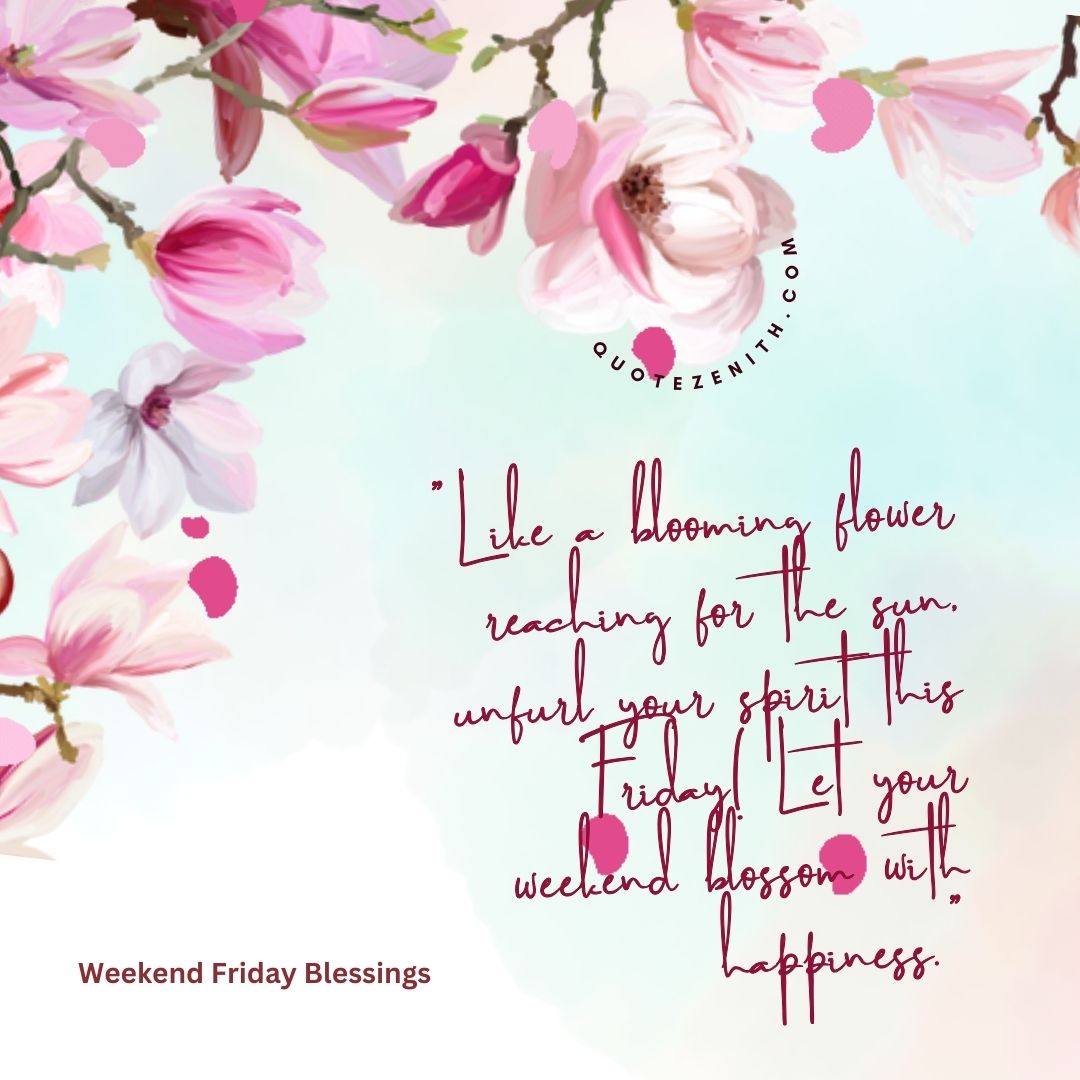“Like a blooming flower reaching for the sun, unfurl your spirit this Friday! Let your weekend blossom with happiness.”